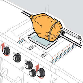 3. Preheat the barbecue with rotisserie burner on MEDIUM HIGH for 10 minutes