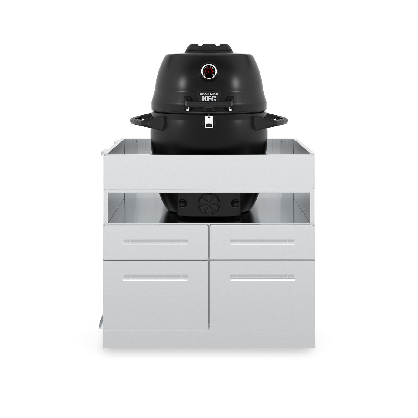 • Custom-fit base for the Broil King Keg – adds stability, height, and enclosed storage.